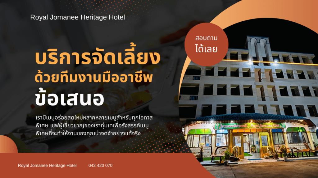 หนึ่งในจุดเด่นของการจัดงานแต่งที่โรงแรมจอมมณี คือ บริการจัดเลี้ยงแบบครบวงจร ที่ช่วยลดความยุ่งยาก และทำให้บ่าวสาวสบายใจในทุกขั้นตอน